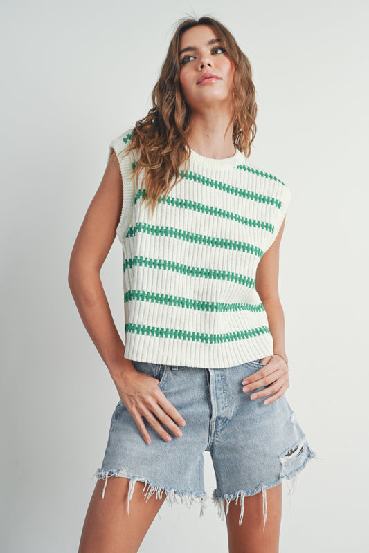 Crew Neck Striped Sweater Tank